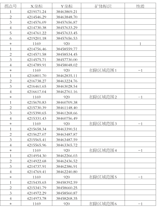 矿区范围拐点坐标:(2000国家大地坐标系3度带)